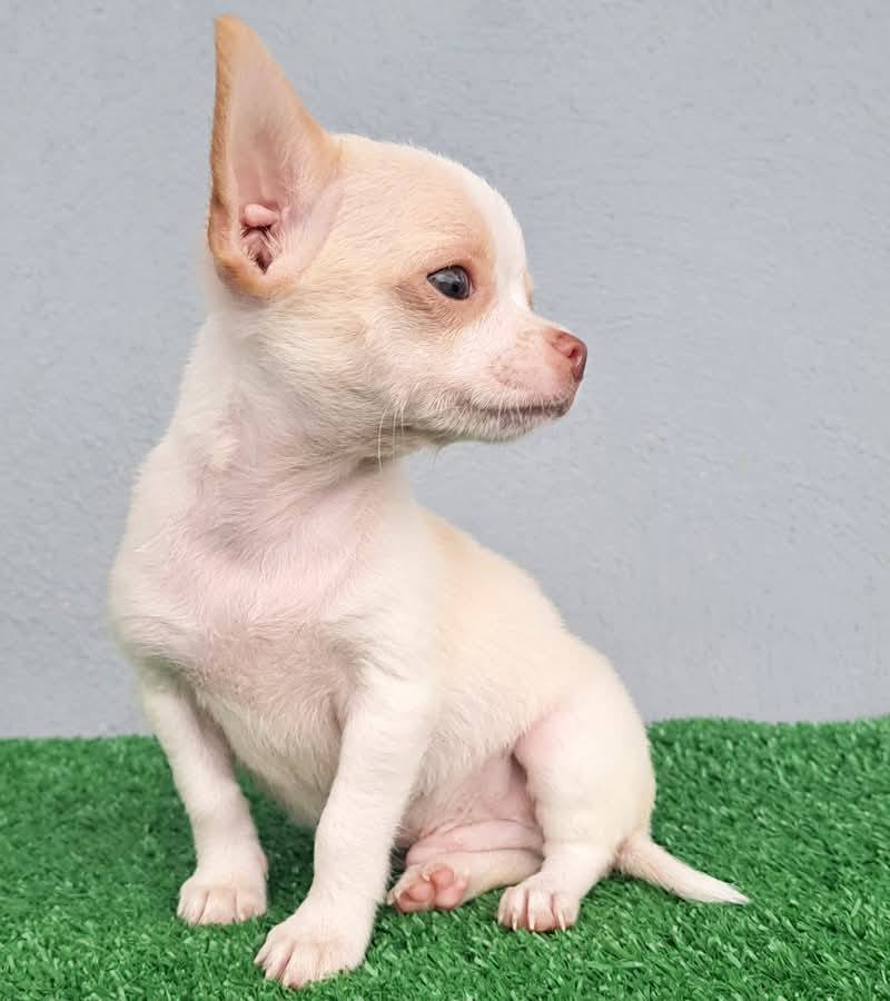 El cachorro Chihuahua Macho cautiva con su tamaño y expresión cariñosa, el Chihuahua es una raza pequeña pero llena de personalidad, ideal para todo tipo de espacio y perfecta como perro de compañía. Destaca por su inteligencia, lealtad y carácter valiente, además de ser fácil de cuidar y transportar. Su mirada expresiva y pelaje encantador lo convierten en una mascota única que rápidamente se gana el corazón de quienes lo rodean.