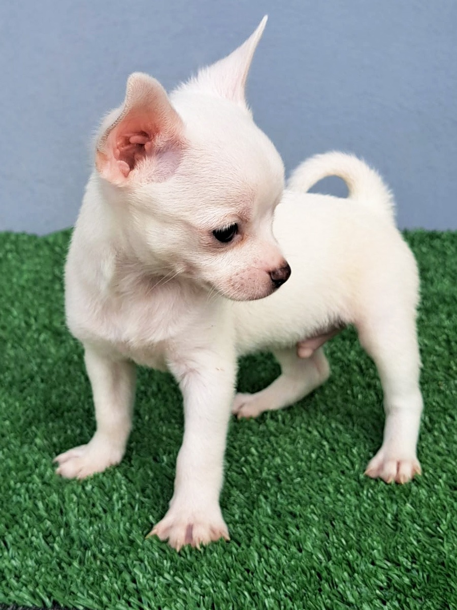Convivir con un Chihuahua es sinónimo de alegría diaria. Esta raza es conocida por su simpatía, su capacidad para aprender trucos y su naturaleza sociable con otros perros y personas, si se socializa desde temprano. El Chihuahua Macho Cabeza de Manzana color Blanco es perfecto para familias que buscan una mascota que se integre con facilidad y se convierta en un verdadero miembro del hogar.